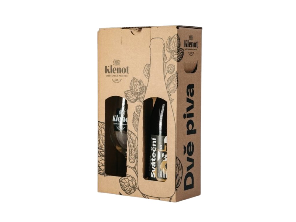 Praktický dárek - lahev našeho piva a pivovarská sklenice 0,4l na nožce.
